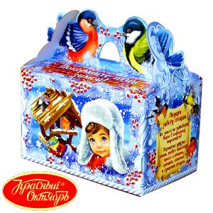 Самая красочная и экономичная упаковка из картона наполнена отборными сладостями для самых маленьких сладкоежек.