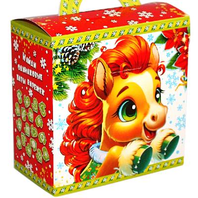 Детские новогодние подарки в картонной упаковке с Лошадью - символом 2026 года