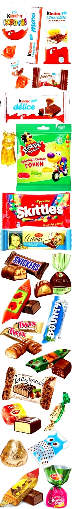 Драже в шоколадной глазури (1 шт), Халва в шоколаде (1 шт), Картошка (1 шт), Батончик №1 (1 шт), Слоеные вафли в глазури (1 шт), "Фонарики" вареная сгущенка (1 шт), Конфеты "Замоскворечье" (1 шт), Конфеты "Осенний вальс" (1 шт), Конфеты "Звонкое лето" (1 шт), Конфеты "Семейка сов" (1 шт)